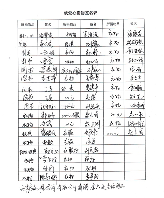 員工的孩子們也來幫忙 在活動結束時我們與院長合影留念 我們的愛心清單 我們的部分愛心捐贈物品