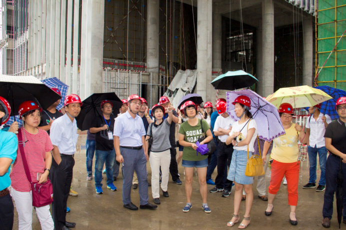 參會代表一行首先考察了由我司提供咨詢服務(wù)的濱海文化中心項(xiàng)目施工現(xiàn)場,我司駐現(xiàn)場項(xiàng)目經(jīng)理陳天偉對濱海文化中心項(xiàng)目的基本情況、項(xiàng)目進(jìn)展、項(xiàng)目難點(diǎn)等內(nèi)容一一做了介紹。
