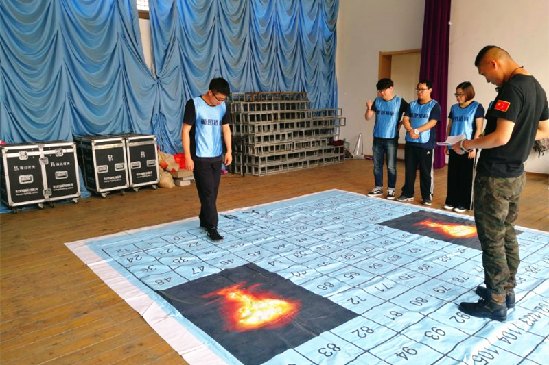 隊員們竭力探索身邊的有效資源,分工協(xié)作,配合有序,但因為密集“踩雷”始終到達(dá)不了終點。時間過半,當(dāng)有人問到“蘑菇云爆炸區(qū)”能否踏入,教官不置可否,大伙兒才恍然大悟,這就是捷徑。