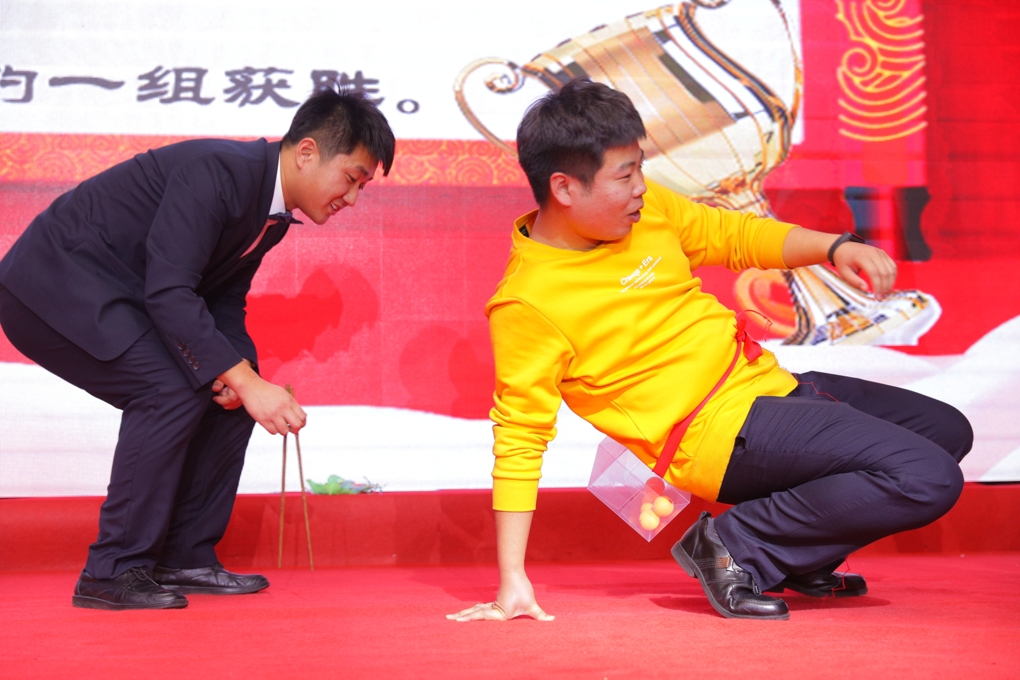 歡樂的游戲時(shí)刻到來,《你比我猜》、《球球大戰(zhàn)》開始了,員工們被“調(diào)動(dòng)”得手舞足蹈,即使被“懲罰”也讓他們捧腹大笑。