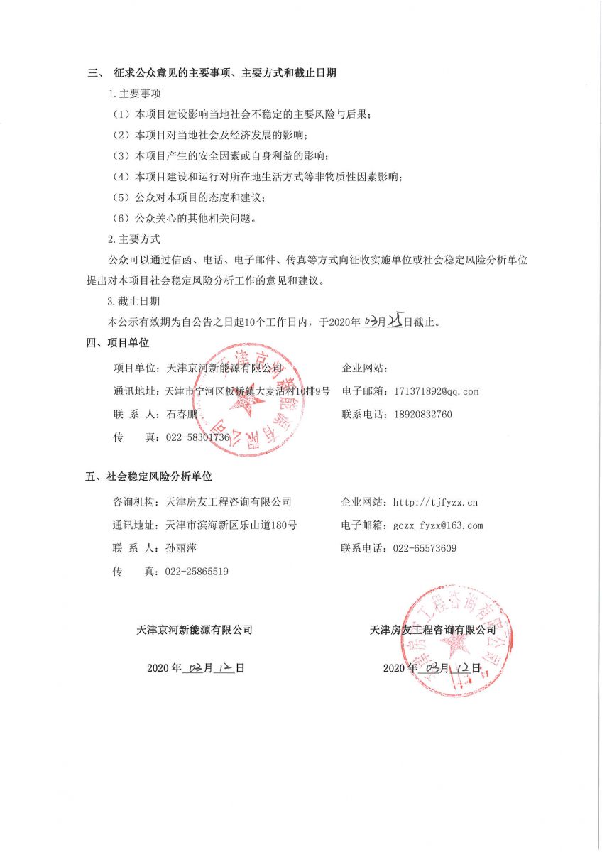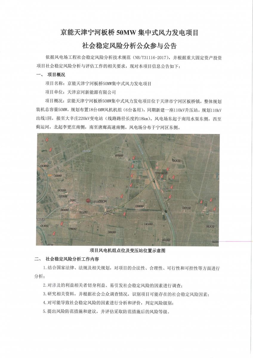京能天津寧河板橋50MW集中式風力發(fā)電項目社會穩(wěn)定風險分析公眾參與公告