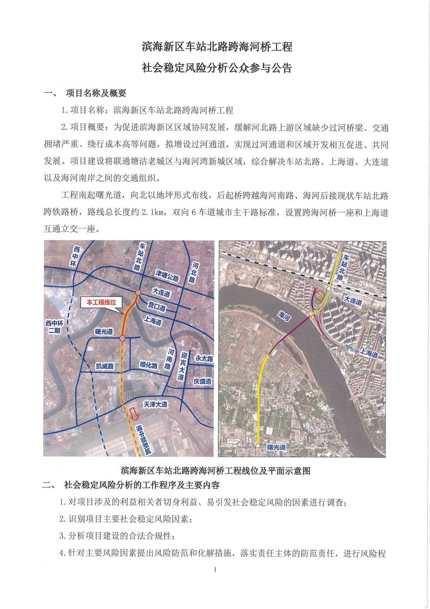 濱海新區(qū)車(chē)站北路跨海河橋工程社會(huì)穩(wěn)定風(fēng)險(xiǎn)分析公眾參與公告