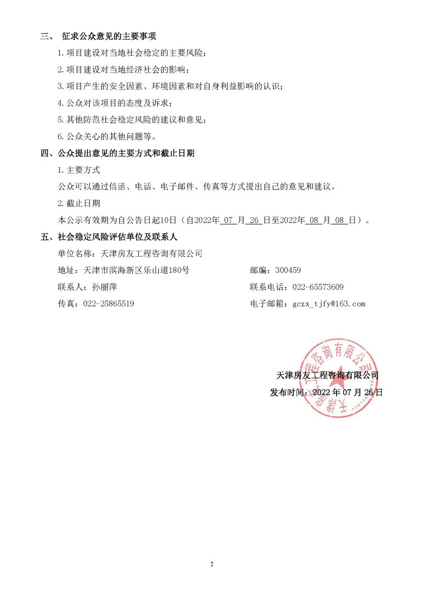 天津東麗楊北路至范莊220千伏變電站線路工程社會(huì)穩(wěn)定風(fēng)險(xiǎn)評(píng)估公眾參與公告