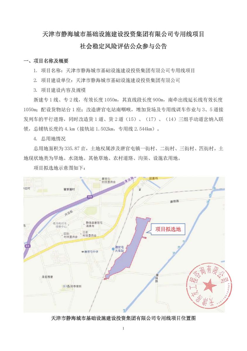 天津市靜海城市基礎設施建設投資集團有限公司專用線項目社會穩(wěn)定風險評估公眾參與公告