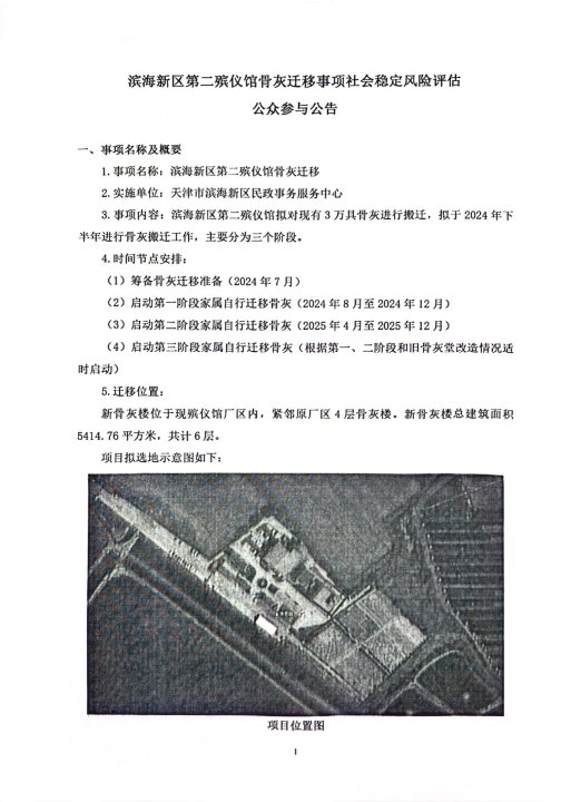 濱海新區(qū)第二殯儀館骨灰遷移事項(xiàng)社會(huì)穩(wěn)定風(fēng)險(xiǎn)評(píng)估公眾參與公告