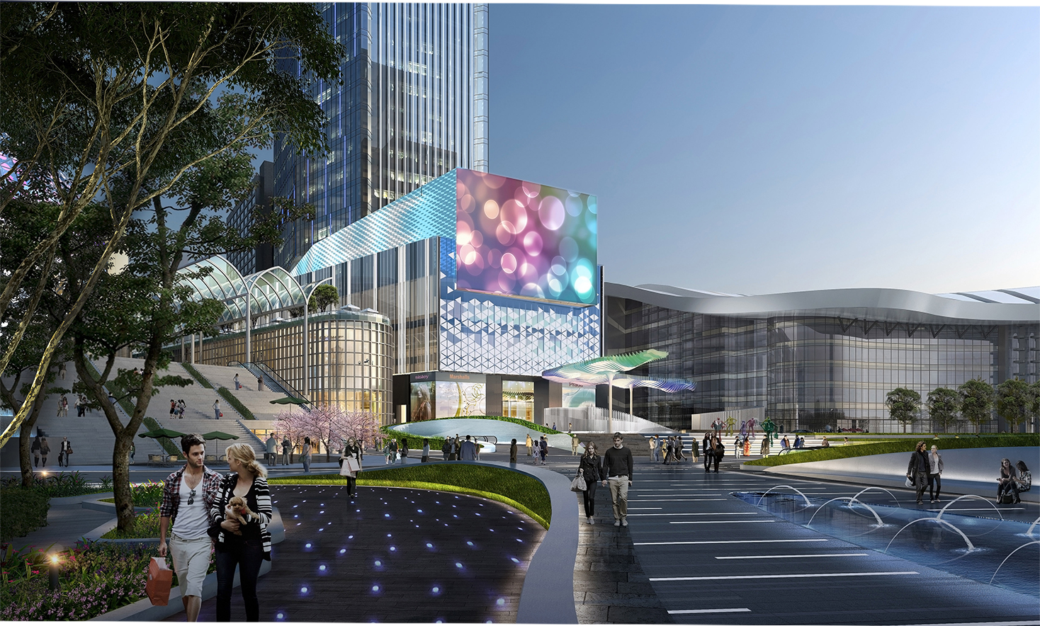 設(shè)置下層廣場與地鐵站無縫對接;設(shè)置商業(yè)連廊,放大主要出入口,在主要位置放置 LED 電子屏裝點(diǎn)入口廣場;設(shè)計(jì)立體交通以匯聚光谷廣場地上地下以及一期步行街人流;屋頂造型獨(dú)特。設(shè)計(jì)師通過一系列方式體現(xiàn)“光”的概念,力圖讓每一個(gè)經(jīng)過光谷廣場的人都能感受其特點(diǎn),從而打造一道全新的城市亮麗風(fēng)景線。