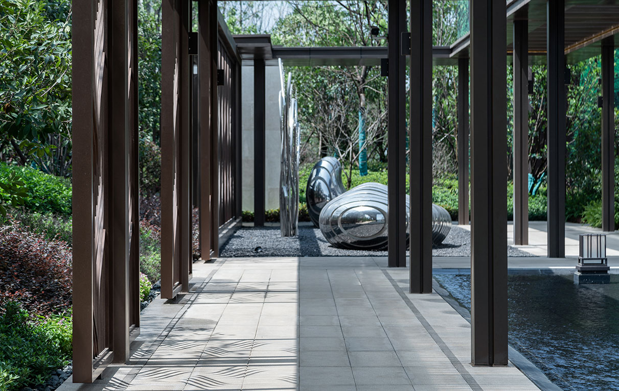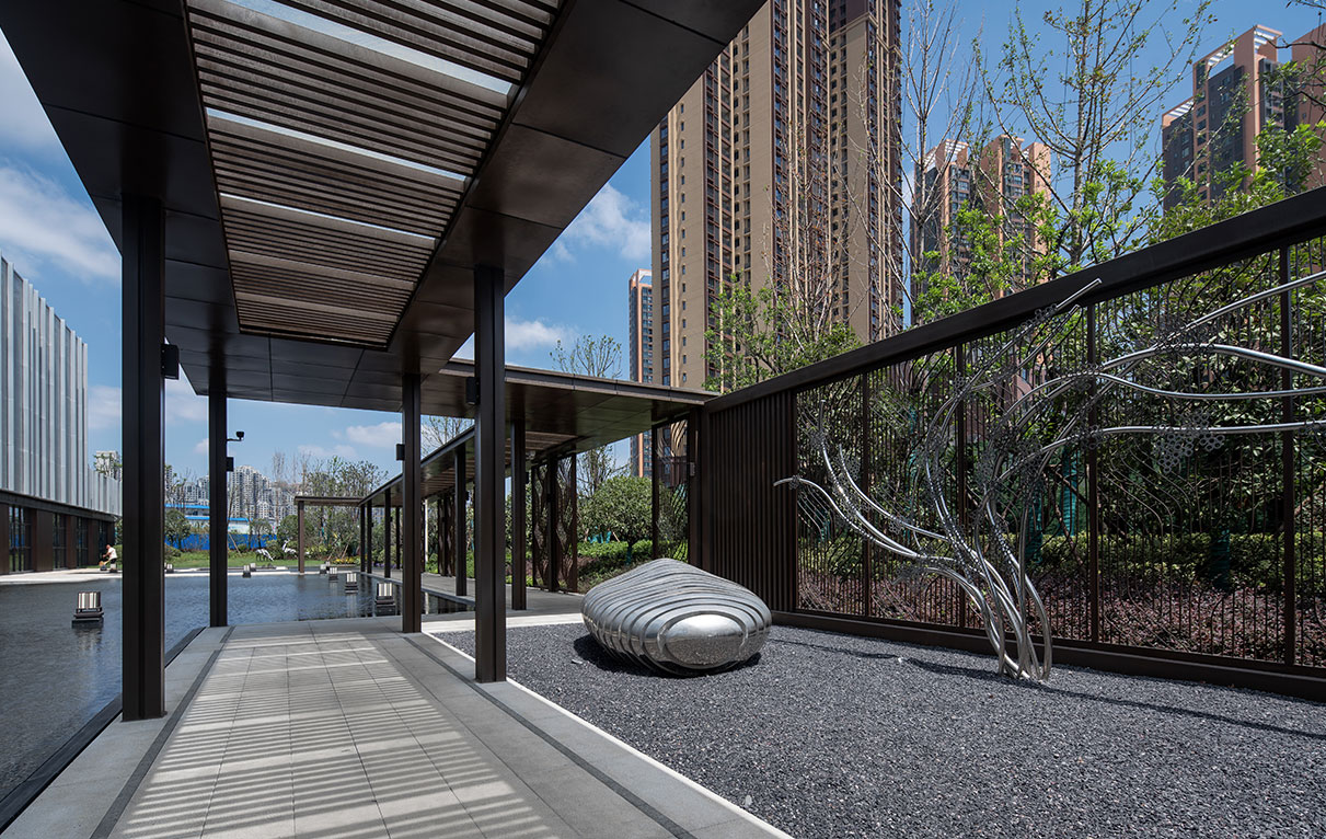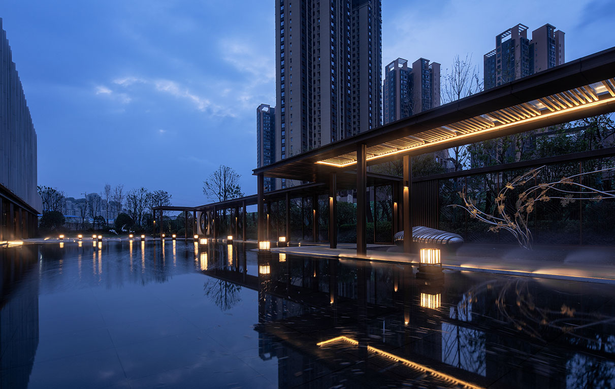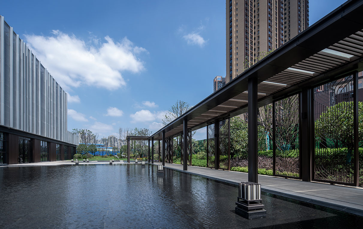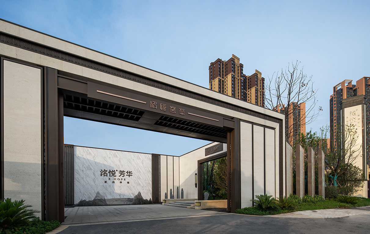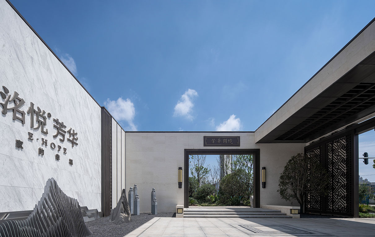 武漢洺悅芳華示范區(qū)位于湖北省武漢市經(jīng)濟(jì)技術(shù)開發(fā)區(qū),項(xiàng)目所屬區(qū)域在三環(huán)線以內(nèi)為主城區(qū)。在項(xiàng)目場地中,商業(yè)建筑的南側(cè)與項(xiàng)目場地西南角距離較近,對示范區(qū)入口區(qū)域產(chǎn)生了干擾。因此,對示范區(qū)出入口方式的選擇是本項(xiàng)目的重中之重。另外,在現(xiàn)有場景中如何將“五進(jìn)”空間融入到示范區(qū)內(nèi)用景觀勾畫出空間的秩序,同時(shí)營造出新中式景觀的神韻感,這也是項(xiàng)目的一大挑戰(zhàn)。