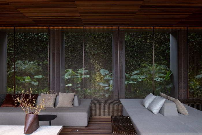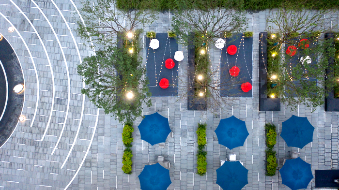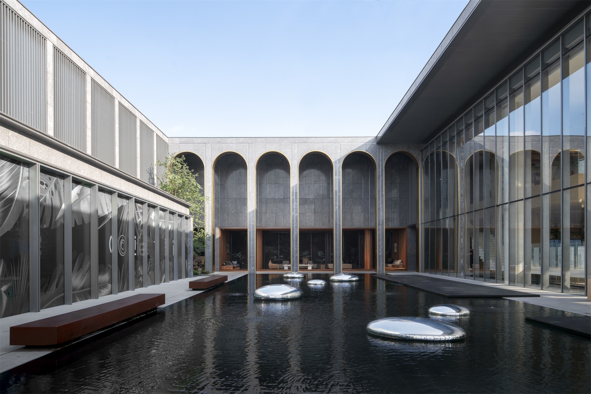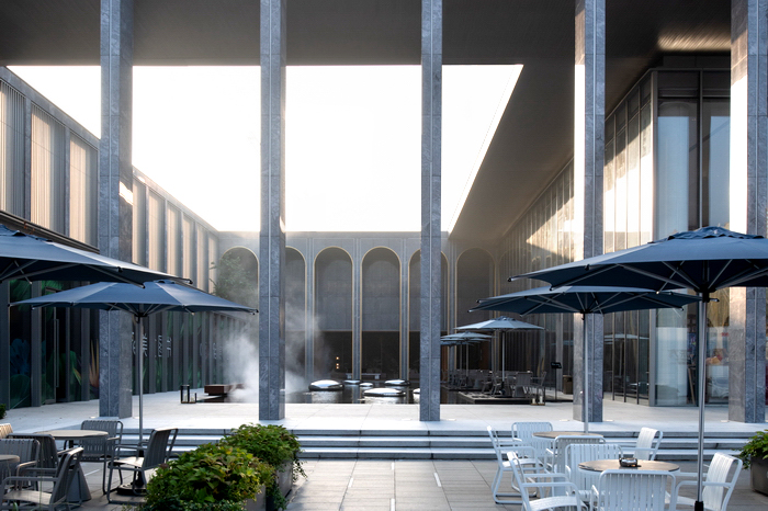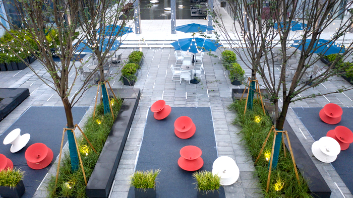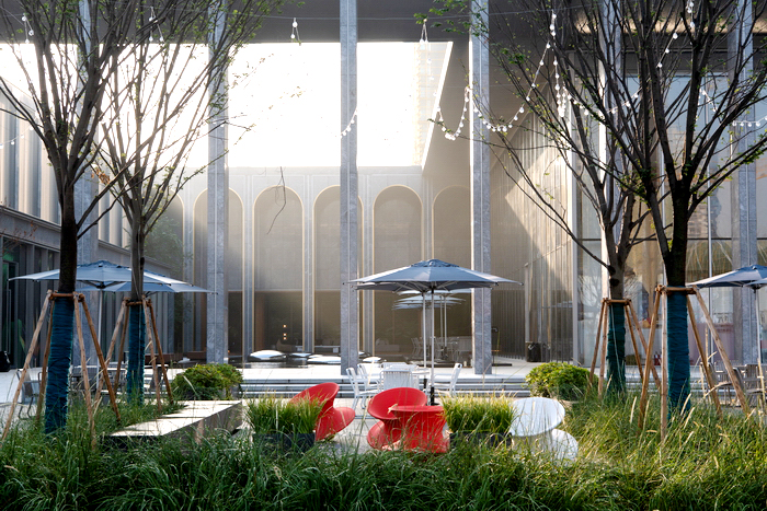 在建筑語匯已經(jīng)極其豐富的這個內(nèi)庭空間,我們非常審慎地選擇景觀搭配的方式,力求和融共生,在不經(jīng)意間實現(xiàn)總體環(huán)境品質(zhì)和氣質(zhì)的提升。