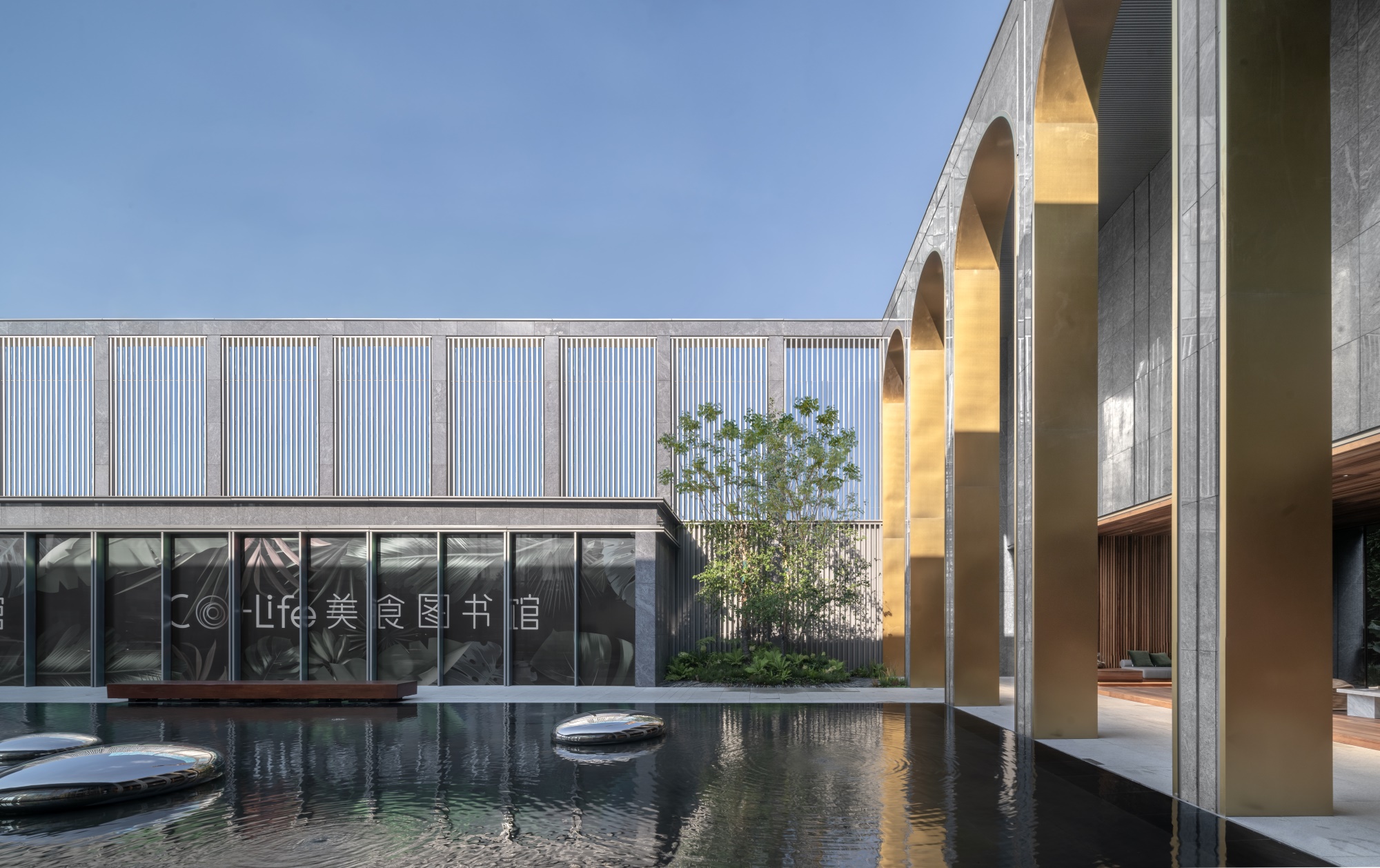 在Co-Life美食圖書館的主題下,用適度的表達讓建筑、景觀、室內(nèi)相互疊加,融合成為渾然一體的多重場景呈現(xiàn)。
