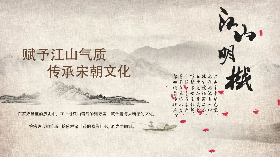 項目分為2個地塊,地塊一占地60畝,地塊二占地43畝。項目示范區(qū)位置靠近城市主干道,通達性、昭示性良好。在家族昌盛的歷史中,在上饒江山背后的淵源里,賦予著博大精深的文化,護佑匠心的傳承,護佑根深葉茂的家族門第,稱之為明樾。項目傳承宋朝文化,賦予江山氣質,故案名為【江山明樾】。項目將宋朝美學與現(xiàn)代景觀相結合,打造一個更鮮明的東方時尚。
