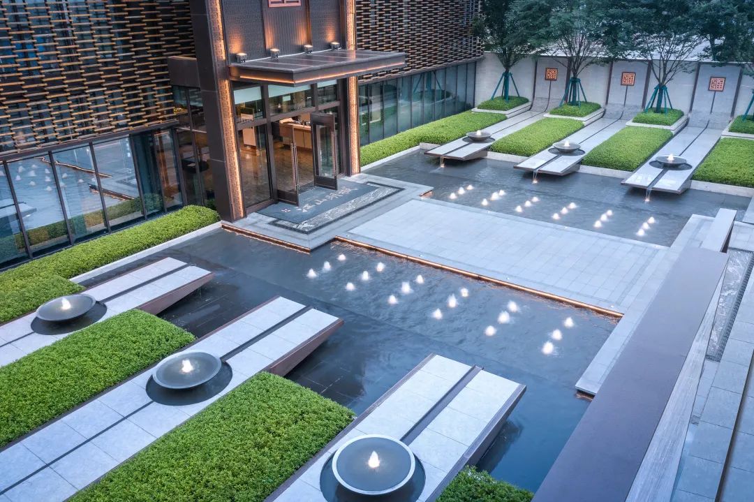 穿越第一進空間,書卷水景與涌泉形成了畫卷般的美景。