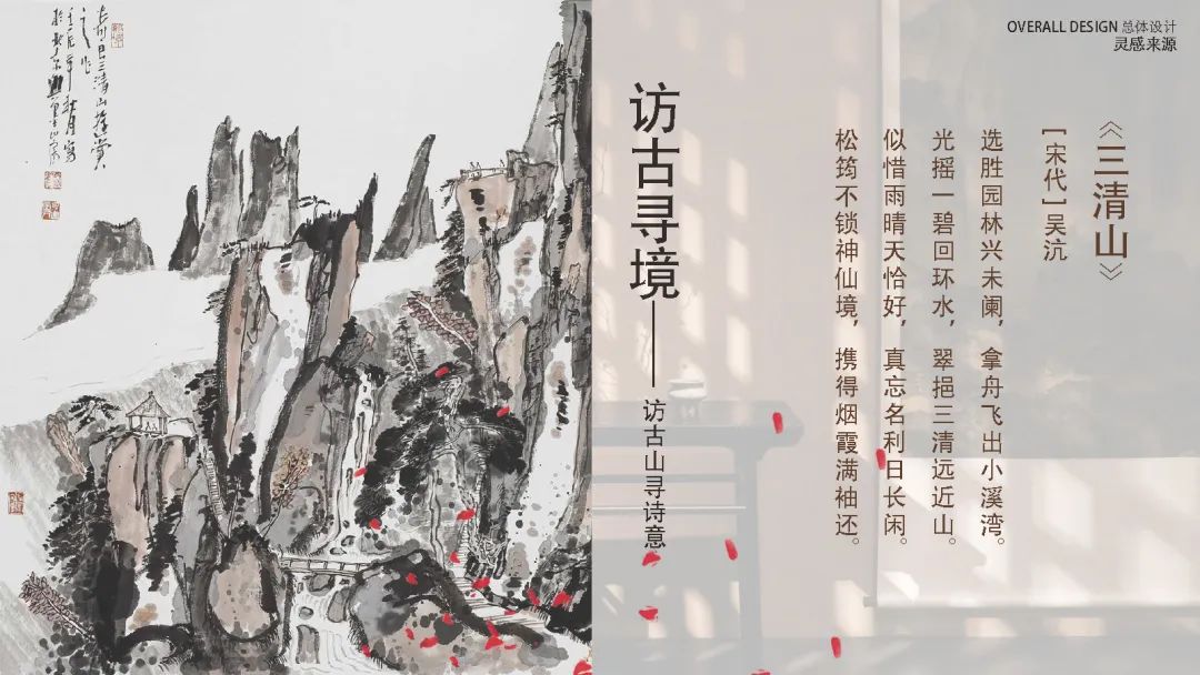 展示區(qū)借上饒八景提煉八重景觀體驗,以上饒的八大景觀,月亮灣,玉清臺,龍?zhí)逗?,臥龍谷,陽春古戲臺,鵝湖書院,汪口古村,三清宮為背景,將上饒文化融進設計中,打造屬于上饒?zhí)厣木坝^。