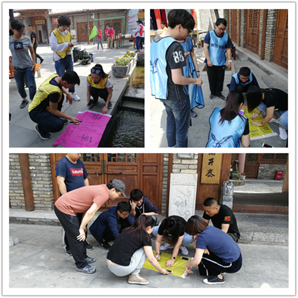 熱身過后以小組為單位進(jìn)行趣味團(tuán)隊展示。全員隨機(jī)分成三個小隊,從成員中選舉隊長,制定隊名、隊歌、隊訓(xùn)及繪制隊徽。此項活動能啟發(fā)團(tuán)員好奇心,體驗團(tuán)隊從最初籌備到最終建成的全過程,樹立團(tuán)隊歸屬感。令人驚訝的是,在教練吹響計時的哨聲后,全員瞬間進(jìn)入團(tuán)建狀態(tài),運籌帷幄、出謀劃策,正可謂“專業(yè)化+規(guī)范化=房友化”。