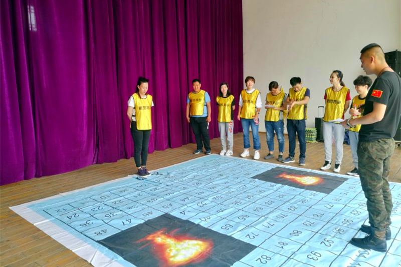 大伙兒帶著對上一個項目的回味,馬上又來到了“穿越雷區(qū)”活動,這完全是一個團(tuán)隊合作項目。7人一隊輪流上場,以成功避雷到達(dá)終點者為勝。