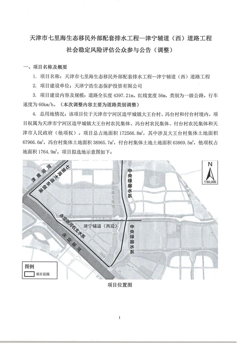 天津市七里海生態(tài)移民外部配套排水工程—津?qū)庉o道(西)道路工程社會穩(wěn)定風險評估公眾參與公告(調(diào)整)