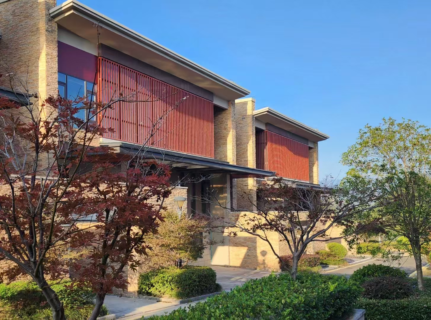 OUTLETS 商業(yè)區(qū)通過商墅本身的橫豎向自由穿插形成各種不同的體量,通過不同材料的變化,加上坡頂?shù)脑O(shè)計,既不失傳統(tǒng)建筑的低調(diào)雅致,又兼顧了現(xiàn)代感。