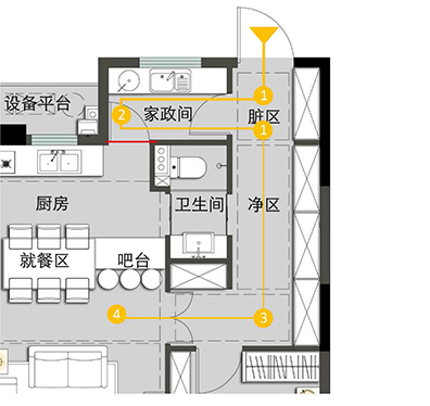 如是非常時期,家政間與廚房間聯(lián)通關(guān)閉,家政間作為家用洗消間,外出歸來、洗消之后保護(hù)家人的安全!
