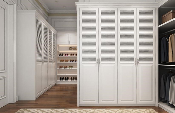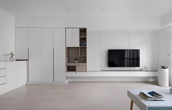 注重細(xì)節(jié)的設(shè)計,比如臥室門垛,增加至0.5米,就可以增加一面墻的完整收納柜。