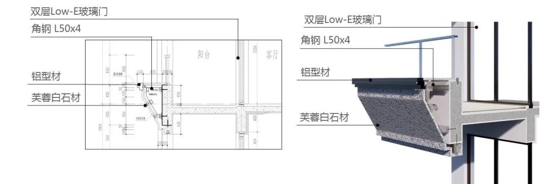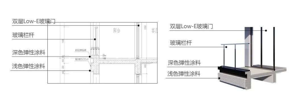 標(biāo)準(zhǔn)斷面設(shè)計中的窗檻墻加玻璃的節(jié)點,陽臺分戶玻璃的設(shè)計研究是提升整個立面觀感的有效投入,同時成本也在可控的范圍內(nèi),團隊通過模型及試樣的推敲有效的控制了細(xì)節(jié)的觀感,并以此項目為基準(zhǔn)在后續(xù)的設(shè)計中不斷的迭代優(yōu)化。
