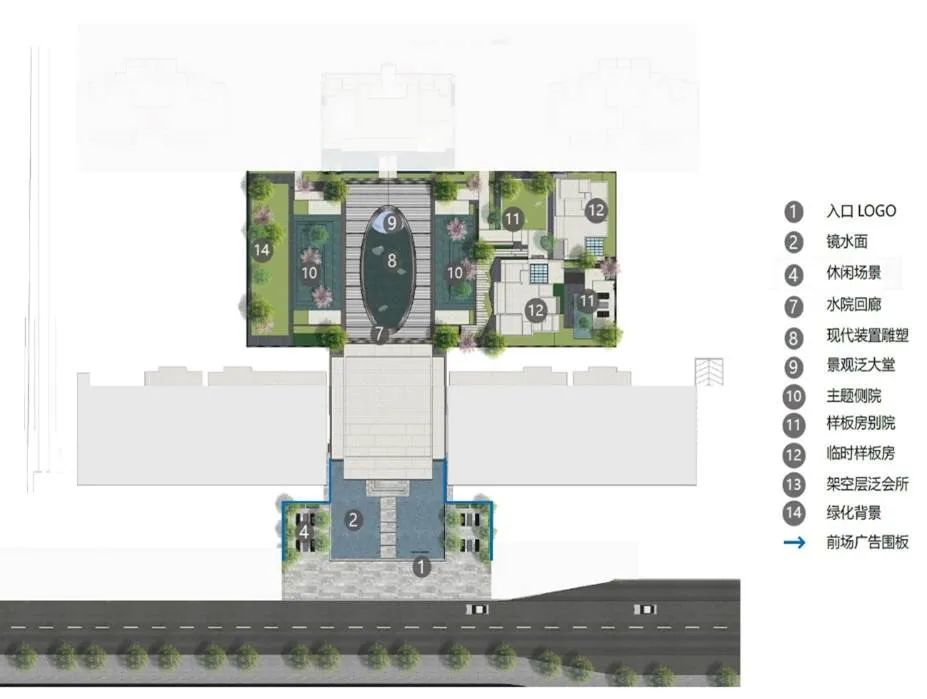 回應(yīng)城市,退讓部分地形,前場設(shè)置大尺度鏡面水,來形成前場空間和展示面。