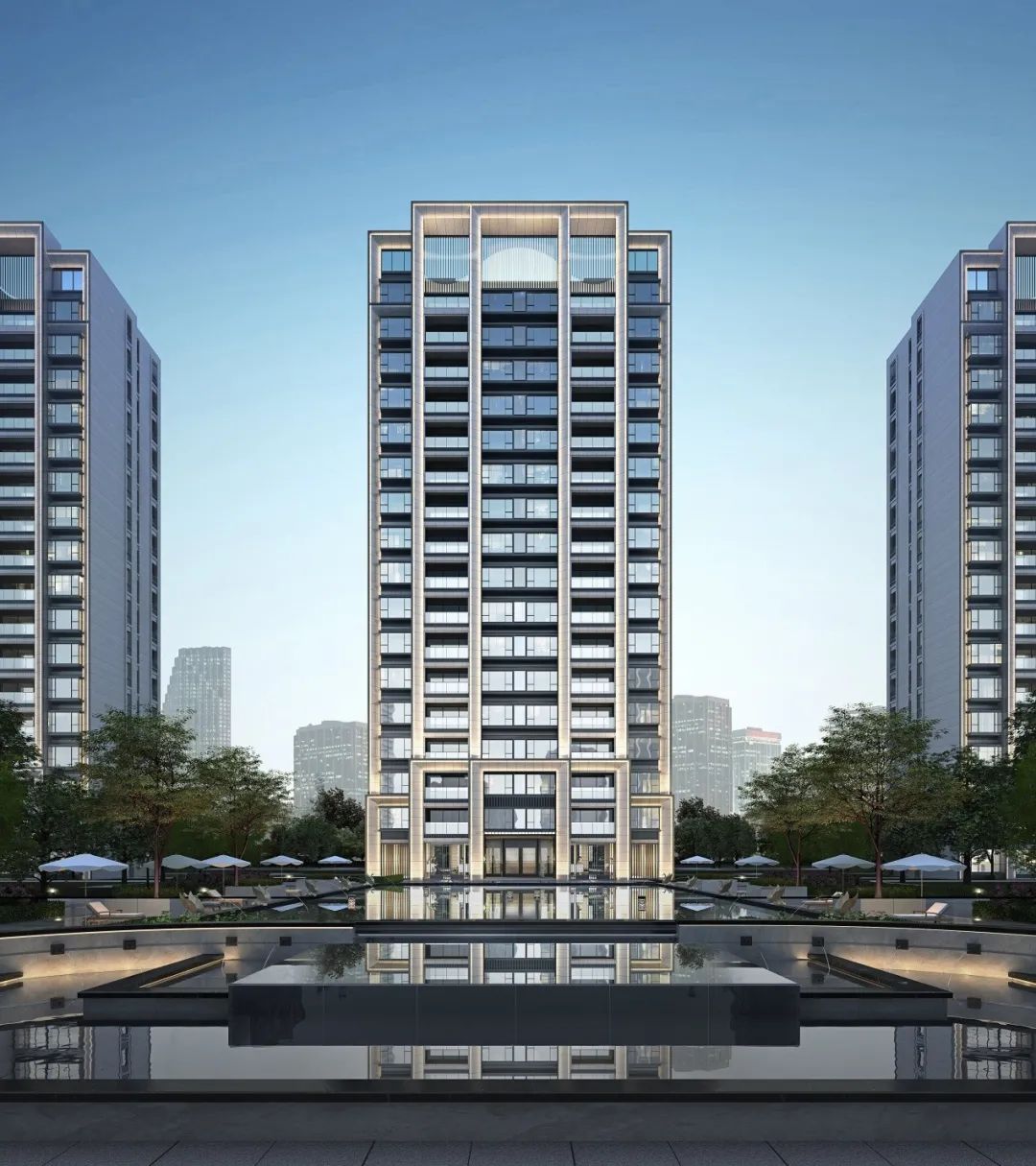 多種材質(zhì)的拼接和精細(xì)化的細(xì)節(jié)處理。采用開放式幕墻體系,石材鋁板幕墻與超白玻相結(jié)合,突顯單元的輕盈現(xiàn)代感。