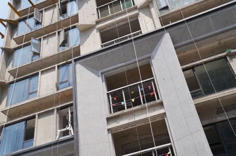 -項目本身受制于成本等因素,大區(qū)立面以土建為主,因此項目中立面的主要線條元素“斜切面”的完成度就成了重要節(jié)點研究對象。我司通過與業(yè)主及幕墻等合作方的多方協(xié)商論證,最終選擇了以成品GRC來取代鋁板幕墻,同時達(dá)到挺拔現(xiàn)代的美感。
