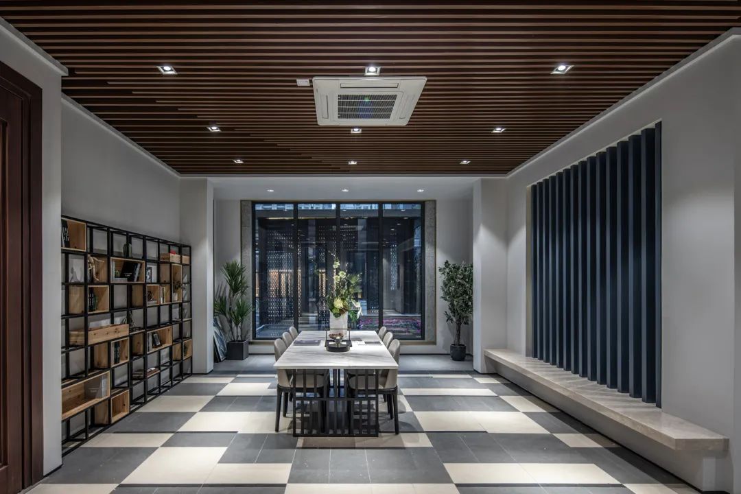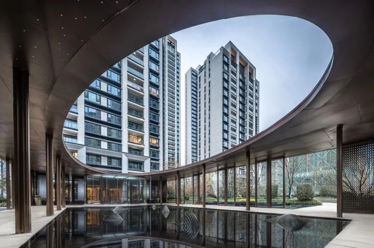 架空層設(shè)計-住宅區(qū)公共空間包括入戶門廳、公共配套等,較為常見的處理方式是以門廳作為室內(nèi)外空間的界限,并通過路徑和空間來營造歸家儀式感。隨著對居住環(huán)境品質(zhì)的更高需求,底層架空的設(shè)計逐漸流行起來。架空后的底層平面自然形成半室外空間用于鄰里交往、景觀營造、社區(qū)活動等多樣化功能,一定程度上解放了用地范圍內(nèi)的土地資源,也革除了建筑內(nèi)外空間界限。但在實際項目操作過程中,常因底層架空的歸屬邊界不清晰,導(dǎo)致成為建筑、室內(nèi)、景觀三不管的盲區(qū)。因此在這個項目中,我們牽頭整合了室內(nèi)和景觀的設(shè)計思路,建筑保證空間的連續(xù)性,地面造景交由景觀延伸,吊頂設(shè)備由室內(nèi)統(tǒng)一設(shè)置,最后圖紙整合,實現(xiàn)一體化的高完成度空間。