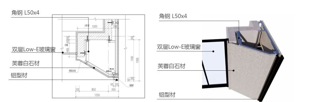 考量到幕墻組件的尺寸拼縫和立面分縫尺寸比例上的協(xié)調(diào),材料的選擇與尺寸大小也經(jīng)過反復(fù)的嘗試與調(diào)整,保證最終效果的實現(xiàn)。從項目的構(gòu)思設(shè)計到建造落實,我們經(jīng)歷了設(shè)計上的反復(fù)嘗試,也在實踐過程中有了新的探索。