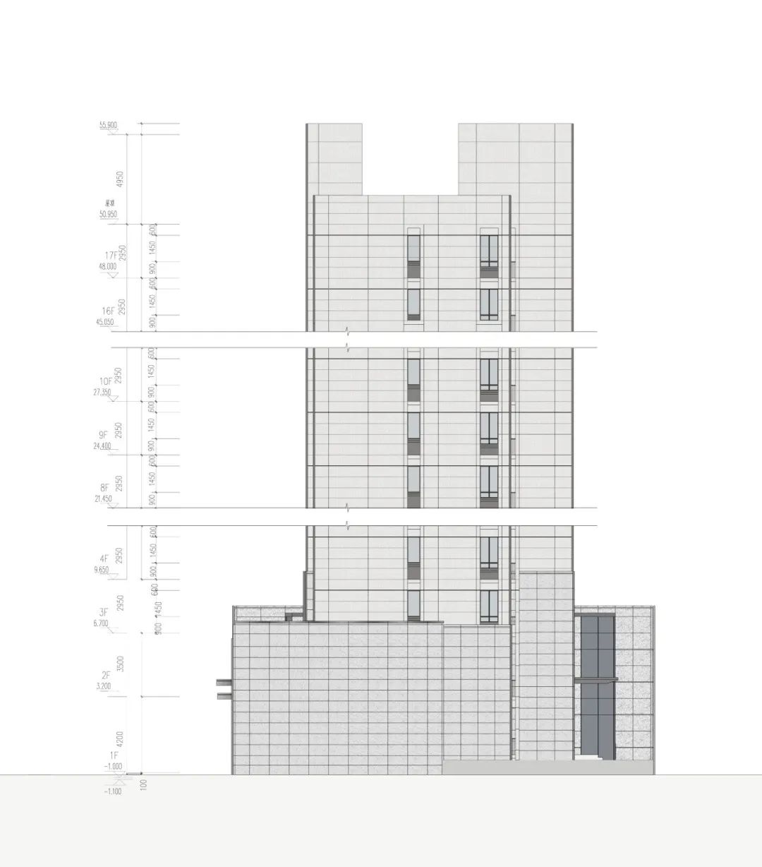 對于建筑立面氣質(zhì)的塑造,設(shè)計團隊決心通過簡潔的現(xiàn)代主義設(shè)計語匯為溫州這座歷史悠久的城市展現(xiàn)一個獨特的富有人文精神的未來。試圖抓取城市的時代感,來拓?fù)淞⒚娴默F(xiàn)代意向,在低成本的約束下完成了立面體系的一次創(chuàng)新迭代。