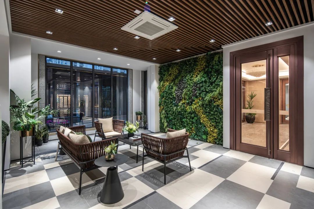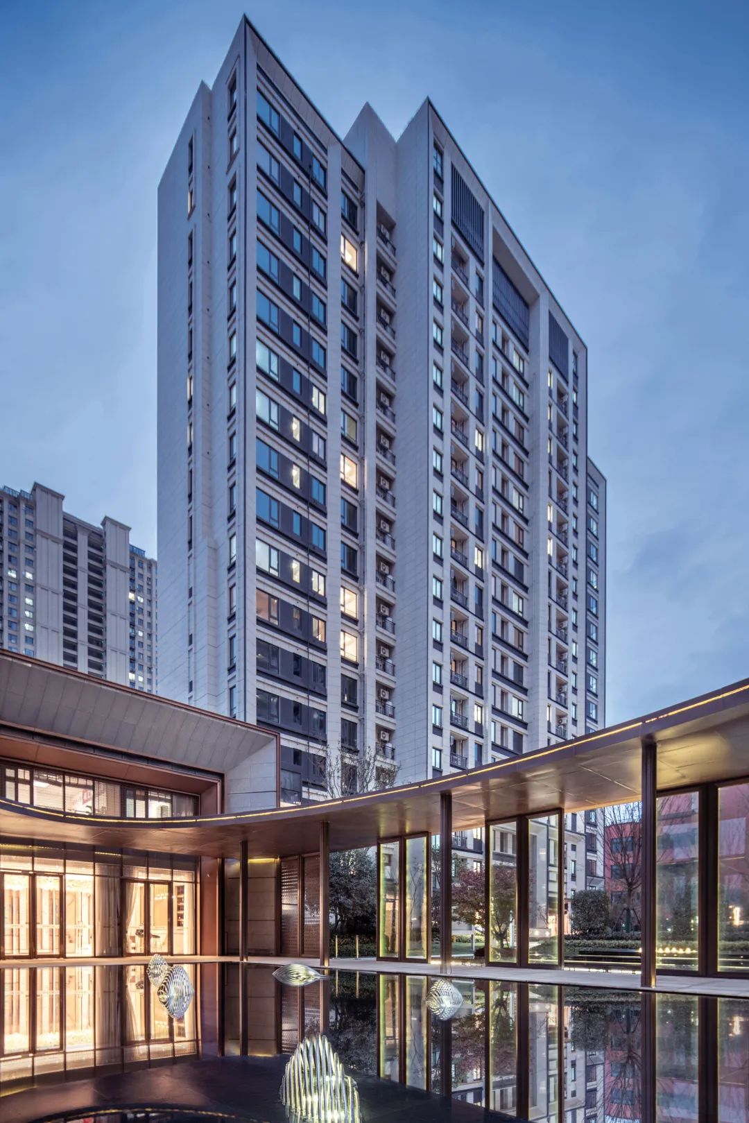 云著的酒店式大堂中空挑高約7米,放大了視覺空間尺度感,給住戶帶來每一次進出的尊貴禮遇。